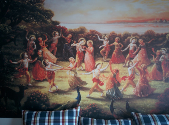 Changez toute l'atmosphère de votre salon, votre salle à dîner ou toutes autres pièces avec une grande image consciente de Krishna. Ces murals sont imprimés sur vinyle. La grandeur est de 5 pieds (152 cm) par 8 pieds (244 cm) Le prix est de 375$ canadien. (Le transport n'est pas inclus.)