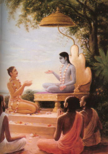 Il est certain que la voie menant à la réalisation spirituelle comporte de nombreuses difficultés: c'est pourquoi le Seigneur nous conseille de rechercher un maître authentique, appartenant à la filiation spirituelle dont il est la source. Nul ne peut donc se dire maître spirituel véritable s'il n'appartient pas à une succession disciplique authentifiée par Krsna. Le Seigneur est le maître spirituel originel, et seul Son représentant dans la succession disciplique peut transmettre Son message tel qu'il est. Il convient donc, pour recevoir la connaissance, d'approcher un maître-spirituel authentique, de s'en remettre entièrement à lui et, sans orgueil, de se considérer comme son plus humble serviteur. Le secret du progrès spirituel réside en la satisfaction d'un maître spirituel accompli; le questionner, se soumettre à lui, donne la clé de toute compréhension...