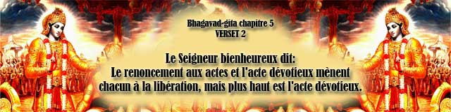 Arjuna n'est pas le connaissant suprême; la décision de combattre ou de ne pas combattre, s'il la prend lui-même, ne relèvera donc que d'un jugement restreint. Sri Krsna a enseigné que l'individu ne représente pas tout ce qui est. Lui-même, Dieu, la Personne Suprême, le Paramatma, habite le coeur de tous les êtres et les dirige. Changeant de corps, l'être distinct oublie ses actes passés, mais le Paramatma, l'Ame Suprême, qui connaît le passé, le présent et le futur, témoigne de ses actes. Les êtres conditionnés se trouvent donc dirigés dans tous leurs actes par l'Ame Suprême. Sous la direction de l'Ame Suprême, ils obtiennent ce qu'ils méritent, sous Sa direction, ils sont portés par la machine du corps, constituée d'énergie matérielle. Aussitôt que l'être est placé en un corps, il lui faut agir selon les conditionnements propres à ce corps. Un homme au volant d'une voiture rapide ira certes plus vite qu'un autre moins bien pourvu, même si les deux conducteurs sont de même force, de même nature, comme les êtres vivants. Pareillement, sous l'ordre de l'Etre Suprême, la nature matérielle façonne, pour un être particulier, un corps particulier, qui lui permet d'agir selon les, désirs de sa vie précédente. Les êtres n'ont pas toute indépendance. Nul ne doit se croire indépendant de Dieu, la Personne Suprême, car tous demeurent constamment sous le contrôle du Seigneur. Il va donc du devoir de chacun de s'abandonner à Lui, et telle est la prescription formulée au verset suivant.